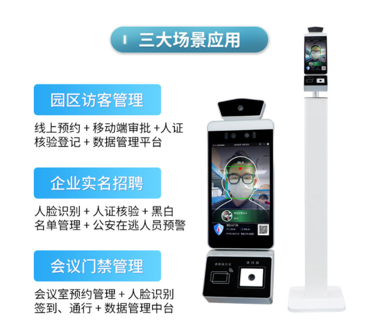 数字哨兵的升级从三方面拓展,充分满足不同类型的用户的不同需求。访客管理方面:顺利获得线上预约+移动端审批+人证核验登记+数据管理平台的模式,充分解决了访客拜访的问题。企业招聘方面:人脸识别+人证核验+黑白名单管理+公安在逃人员预警;在实名方面保障每个面试人员的实名性。不仅如此QY球友会还推出了新的会议门禁套餐,顺利获得会议室预约管理+人脸识别签到、通行+数据管理中台,充分解决员工的会议考勤问题。