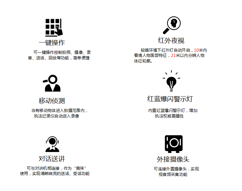 QY球友会DSJ-200F 执法仪(法院/政府/城管)拍摄像素高达5000万,广角镜头137,拍摄画面精细而全面,大容量电池支持陆续在工作12小时不断电